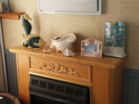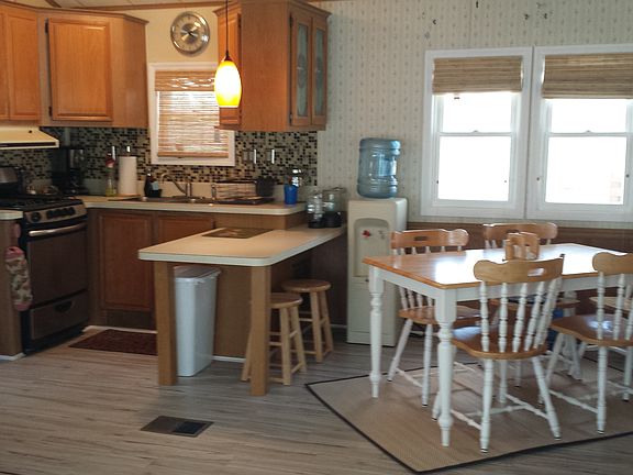 1991 Chariot Eagle Park Model. Roof, Windows and siding replaced in 2014. Allure vinyl plank flooring installed throughout in 2014. Stainless steel appliances. Custom made woven wood shades all windows on trailer side. Central air. Propane fireplace heating. Shed. Sold as is. Furniture not included.
