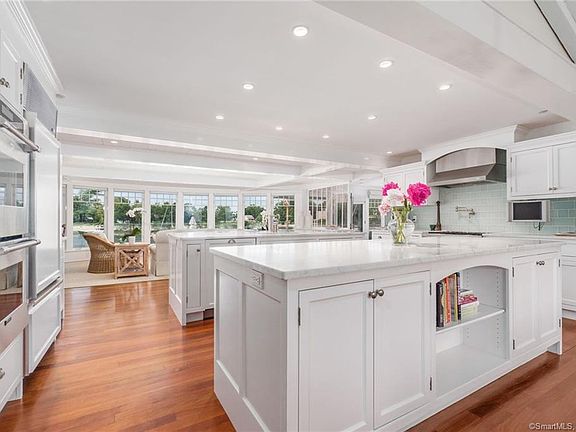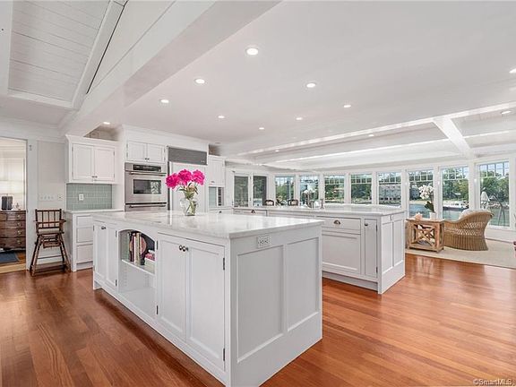 Nantucket in Rowayton! Direct waterfront retreat with private dock 55 minutes from NYC. Grassy yard, your own beach, new seawalls, private dock, all on a double lot of .29 acres in the private enclave of Rowayton Beach Association. 6 Bedrooms, 5.5 Baths, 5500 SF, this rambling New England charmer was remodeled by Roger Bartels. Then the house was upgraded in 2013 with all new mechanicals, heating system, plumbing, landscaping, hardscaping etc when it was also raised. A mix of sleek open floor plan and original beams and floors from 1926 gives this home character and warmth. Plenty of living spaces include living room, family room, den, new covered decks, new patio. Master has windows galore and waterfront balcony. Watch the boats and paddleboarders go by or jump on your boat from your private dock and explore the Long Island Sound. Your own private resort awaits in this coveted and friendly beachside oasis!