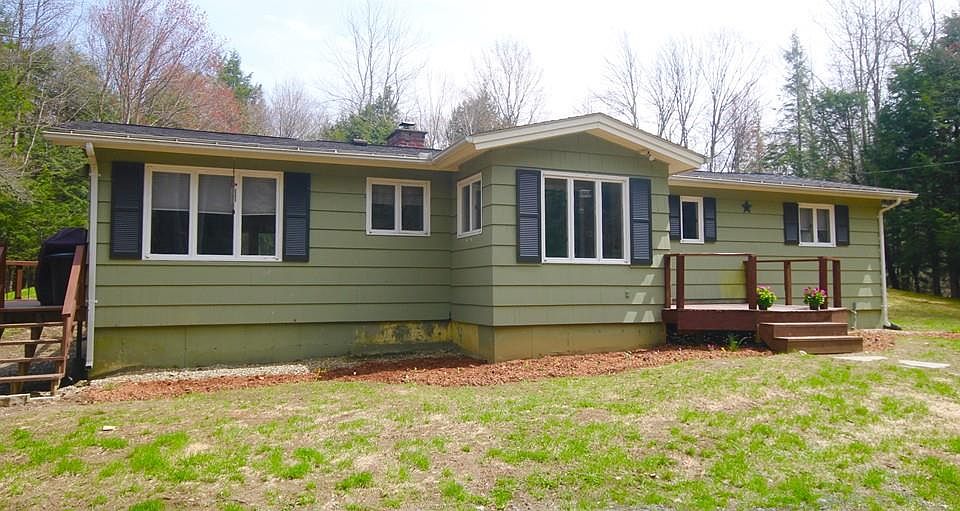 Private sunny, country location with over seven wooded acres of forest, which could be an unending firewood supply. Hardwood floors throughout. Fireplaced great room has a large pellet stove set into the massive fireplace to heat the open floor plan of living room, dining area, and kitchen. Located near Goshen center, just a few minutes from Williamsburg and Northampton.
