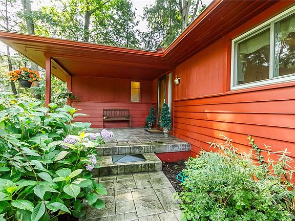 Welcome to this charming mid-century ranch in Brighton with highly sought-after Pittsford Sutherland schools. Unique gem, owned by original family over 50 years, available for 1st time! You'll be greeted by covered front porch, perfect for relaxing & enjoying the neighborhood. Step inside & discover an eat-in kitchen & large window, allowing natural light to flood in. Oversized living room boasts a wood-burning fireplace, creating a cozy ambiance & seamlessly connects to dining room, ideal for entertaining. 3 good-sized bedrooms, with primary bedroom offering convenient access to full bath. Architectural details include multiple hidden closets cleverly disguised behind bookshelves, gives extra storage & maintains the clean lines of interior. Downstairs, a finished basement with 2nd full bath, adding living space for various uses. Screened-in back porch beckons you to enjoy outdoors being shielded from elements. Don't miss the opportunity to own this architecturally designed & meticulously maintained home. Perfectly blends timeless style & modern functionality. Updated windows; painted exterior; roof 2015. Delayed neg. 8/9-6 pm. Life of offer 24 hrs. Open House 8/6/23; 12-1:30 pm.