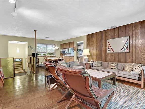 Midcentury charm on an incredible lot. Centrally located to everything, this high ranch home features an upper level with 3 sizable bedrooms, a full hall bath and an updated full master bathroom. There is plenty of closet space throughout the home and a finished lower level that walks out to the massive private, backyard. Attached to that is a huge 2 car garage. This home has been impeccably maintained throughout the years, you can feel the care and love when you walk in!