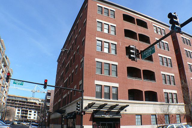 West Loop Wonder! Hurry to The Racine, a mid-rise, boutique, elevator building in the best West Loop location. This exquisite three bedroom, two bath luxury condo has high end finishes, and is in pristine condition. Enter the graceful slate floored foyer and into the sunlight living/dining room combo with Brazilian cherry hardwood floors, crown moldings and gas fireplace with lovely mantle and slate surround. The expansive kitchen has a huge granite breakfast bar, 42” cherry cabinetry, Brazilian cherry floor and all stainless steel appliances. The serene master suite includes a walk-in closet, marble master bath complete with separate body spray shower, whirlpool tub, and huge granite double sink vanity. There are two additional bedrooms with spacious closets and a second marble bath completes the interior space. This unit features a covered terrace adjoining the living room and a private roof deck with awesome skyline views. Included is a heated, garage space with additional storage. This home is located in the Skinner school district. Walk to the blue line el.