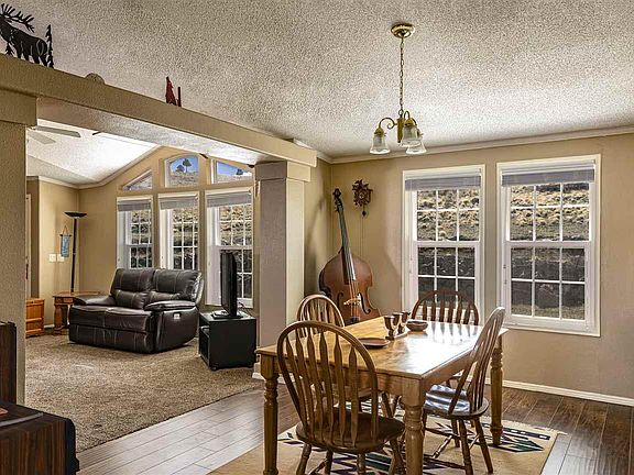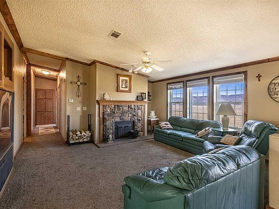 Views Views Views! from this lovingly cared for 2500 sq ft manufactured home. The MVD title has been vacated and it's listed as real property. LARGE bedrooms with walk in closets, 3 bathrooms, 2 living areas, 2 walk in closets in the spacious master suite, office, 2 wood burning, heat providing stoves, oversized 2 car garage/workshop, stucco siding, shed, run in stall, fenced and cross fenced for your furry friends, and views of the Wheeler Peak range, Eagle Nest Lake, Baldy and Touch Me Not mountains, and all the way to Colorado! And all on one level! High speed internet, new windows and blinds, new pressure tank in the well and NO Angel Fire Resort dues. Get the picture? Frequented by large herds of elk too! Let us show you this affordable mountain home today!