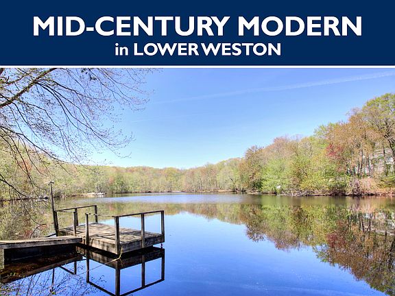 For more pics and info, visit 35Salem.c0m or for similar listings, visit RyanCornell.c0m. Waterfront Mid-Century Modern on cul-de-sac, in Lower Weston on 6.31 waterfront acres, subdivided* into 2 lots: a 4 Acre parcel (with house and tennis court); plus separate 2.31 Acre Building Lot (with land on both sides of the dam/waterfall). Long private drive, deer fencing. Surrounded by luxury homes. Inside, an entire side of this very cool house is a wall of glass with amazing water views. Open & spacious floor plan, vaulted ceilings. Located in center of town, near Weston's top-ranked schools. Full finished walkout basement, automatic Generator. Ready for renovation/personalization. *If interested in buying as 2 separate parcels, ask for details about installing new driveway.This listing is for both parcels. Also listed separately.