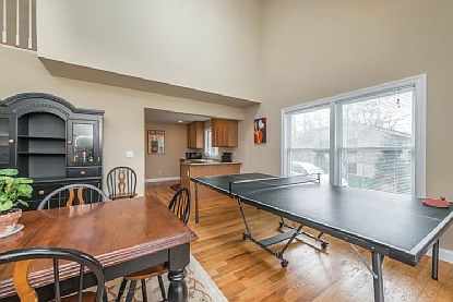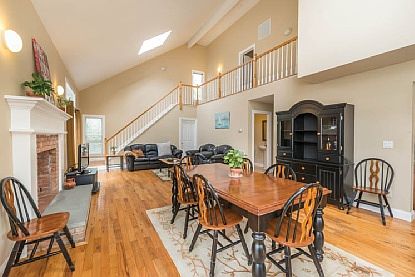 This postmodern home is sited on a shy half acre on a private street off beautiful Woodbine Drive in East Hampton. The open-plan first floor is light and bright, with hardwood floors throughout and an easy flow among the great room with vaulted ceiling, skylights and fireplace, the dining area and the large galley kitchen with granite countertops. Also on the first floor are two bedrooms and two and one-half baths. Upstairs is the generous master bedroom with en-suite bath with glass-enclosed shower/tub and marble countertop, and an additional en-suite bedroom. The home also has a full basement that can easily be finished. Sliding glass doors open to an expansive deck with lots of room for backyard barbecues and relaxation. A two-car detached garage completes the package. This well priced, beautifully maintained home can accommodate a pool and is ready and waiting for its new owners. A survey including a generous envelope for a pool can be provided upon request.