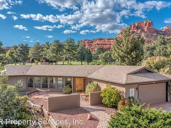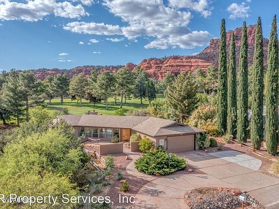 Overlooking the 16th fairway of Oak Creek Country Club golf course with fabulous Red Rock Views and a park-like setting of green grass and stately trees! Golfer or not, you'll love the location with expansive rear view deck and patios. The welcoming circular driveway and entry paver courtyard invites guests into an expansive light-filled great room with vaulted ceilings and massive windows. Three spacious bedrooms, PLUS 2 ADDITIONAL ROOMS ideal for office, crafts, and more. The spacious interior features a full walk-out lower level perfect for family living and entertaining, or possible private living quarters. VALUE PRICED at only $168.18/sq.ft. - 34% less than sold homes backing to this golf course. OWNER MAY FINANCE. The MAIN LEVEL features the master bedroom ensuite, 2nd bedroom ensuite, plus kitchen, great room, formal dining room or den, powder room and laundry. The LOWER WALK-OUT LEVEL is a great place to escape and enjoy casual fun with a backdrop of red rock and golf course views! Featuring an expansive recreation/family room, wet bar, bedroom, full bathroom, and two additional rooms ideal for office, crafts, and more. Plus, a storage room. Topping the alure is the great location near Oak Creek Country Club, tennis, park, hiking, and Village of Oak Creek amenities. Many furnishings added after photography and are available under separate bill of sale. For more information or to schedule a private viewing, contact Lynne Easterday.