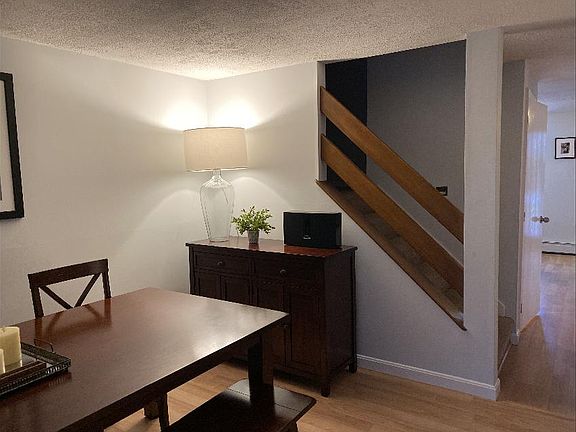 Well-maintained town home in Ridgefield Development. Three floors plus basement storage. A/C on each floor. Balcony on second floor. Covered patio off living room. One secure parking space in garage with remote door opener, plus one off-street space. Well-behaved pets ok. Owner pays for water, trash removal and landscaping. Renter responsible for electricity and fuel oil. Last month's rent plus security deposit due at signing. Lease for 6 months or 1 year.
