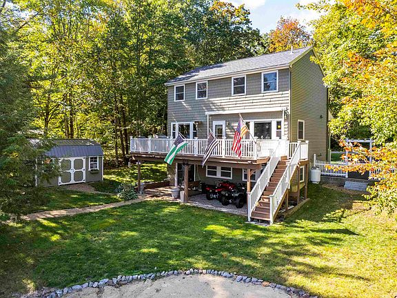 Sargent Lake FULLY FURINISHED* WATERFRONT Belmont, NH UPDATED 1,980 Sq Ft Home with 105’ of shoreline, 3 Bedrooms, 2 Baths on .29 acres for only $734,999! Chance of a lifetime to own this Lakefront Home which has been meticulously maintained by the current owners. This home has been freshly painted throughout. The open concept first floor with AC Mini-Split offers a spacious 31x20 Dining/Living Room with NEW vinyl flooring & pellet stove, a gorgeous Kitchen with Dekton engineered stone countertops, well appointed appliances, an abundance of cabinet space & Half Bath. The upper level with NEW carpets provides for the 14x11 Primary Bedroom with AC Mini Split, the second Bedroom with Mini-Split AC, the third Bedroom that could be used as an Office & the Full Bath. The heated walkout lower level has been partially finished offering a Family Room, a Bonus Room, a Utility/Laundry Room & a Workshop with plenty of storage space. Sit back on your private composite deck with vinyl railings & awning to enjoy your private waterfront beach with dock, stone pebble fire pit area & Shed with metal roof. Have confidence in this energy efficient vinyl sided home, with vinyl windows, three Mini Splits with heat pumps, pellet stove, water softener system & Kohler whole House Generator. Enjoy Lake life on this 43 acre lake offering peaceful serenity, beautiful scenery & amazing water activities. Open House is Sat Nov 18 from 11-1 pm. REQUEST HOME VIDEO. Don’t let this amazing waterfront get away
