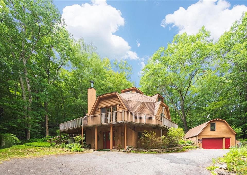 Are you looking for a home that's architecturally unique and quite possibly, a conversation starter? If yes, then look no further than this fabulous Geodesic Dome Home. Modern yet rustic; deceptively spacious yet cozy. Perched on 2+ secluded acres, complete with natural rock accents and colorful perennial gardens. The first floor of the home features an open floor plan with gleaming hardwood floors and a cathedral ceiling. There's also a master bedroom suite complete with walk-in-closet. French doors open onto a wrap-around deck that offers lofty views of the country gardens. 2 additional bedrooms and a full bathroom are located on the second floor of the home. The finished basement adds an additional 1224 sq ft of living space. There's a cozy family room with fireplace and half bath, a huge recreation room, a home office and an enviably large laundry room, too. You can never have too much storage space and this home delivers, both inside and out. The interior offers large closets throughout, and there's lots of storage for automobiles, motorcycles and the likes with a garage and a huge car port. Plenty of room on site for a boat or an RV, too. Don't forget to check out the workshop above the detached garage. Could also work as an artists studio if needed. Additional buildings on site include a large wood shed, greenhouse and a garden shed, too. This amazing home is delightfully unique and its design makes it incredibly efficient compared to traditional box shaped homes.