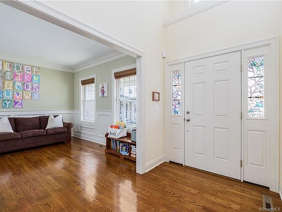 BETTER THAN NEW! Gorgeous Newer Colonial 4BR, 2.5 Bath "Deerfield" (Largest Model) within the pristine Cranberry Hill Estates Offers 3236sq ft fully equipped w/all the Modern Luxury you dream of! Conveniently located on a quiet circle, ideal for kids to ride bikes or play in backyard- which is the largest in the complex! The inviting Front Porch welcomes you inside to the bright 2-Story Foyer w/gorgeous moldings, 9ft ceilings, & gleaming hardwood floors throughout. The Chef's Kitchen has beautiful Cabinetry, slow close drawers, Granite Counters, Stainless Steel appliances (Gas Cooktop/Double Oven),large Center Island w/Breakfast Bar, Pantry, sunny Breakfast Nook, & clever chalkboard wall opens to Family Rm w/Custom Stone Gas FP & french door to rear Trex Deck. Formal Living Rm being used as an Office, Elegant Dining Rm, Neutral Half Bath. Main Level Laundry Rm, Convenient Garage Entry,& door to backyard give mudroom feel. Upper Level has expansive Master BR w/His &Her Walk-In Closets, tray ceiling, &Luxurious Bath w/Soaking Tub, separate Shower, double sinks &vanity, plus 3 Additional BR's, &Full Hall Bath w/double sinks. Lower Level has bright Playroom w/French Door that leads to Patio, & plenty of room for storage. Gas Heat, City Water/City Sewer, Underground Sprinkler, & Professionally Maintained Grounds (w/organic Tick Treatment) make this a carefree lifestyle! Close to Shopping/Restaurants. Award Winning School-Long Hill Awarded School of Distinction. Watch Virtual Tour!