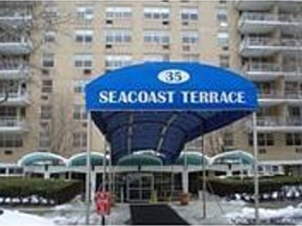 Seacoast Terrace coop for sale. 2BD/2BTH/Terrace, separated rooms, lot of closets, dine in area, very nice view, sponsor sale - no board or management approval needed, no transfer tax, financing available from sponsor with 30 or more down payment. Amenities in building include 24 hours doormen, Gym, Sauna, storage, upgraded laundry. Short waiting list for parking. Conveniently located - one step to the beach, shopping, public transportation - B and Q train, buses.