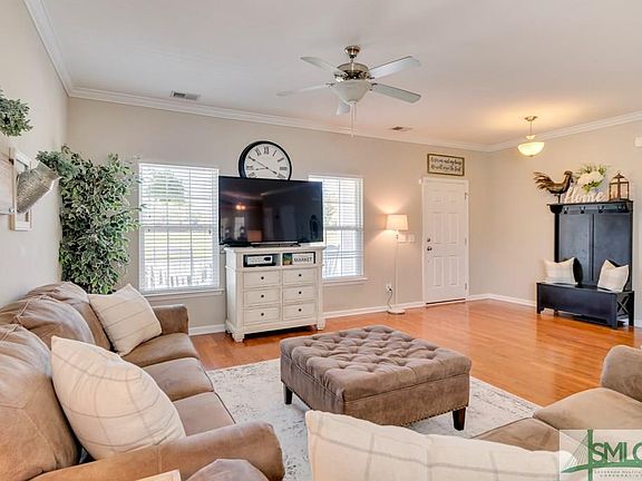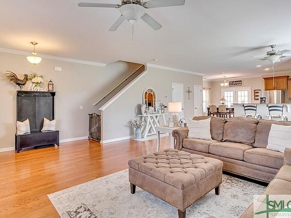 Open concept floor plan with crown molding and wood laminate flooring throughout the main floor! New carpet upstairs! Eat in kitchen with granite countertops, breakfast bar, stainless appliances including new dishwasher, and pantry. Upstairs are 2 large bedrooms, full bath with double sink vanity, and spacious master bedroom suite with tray ceiling and walk-in closet. Master bath features a double sink vanity, garden tub, and separate shower. Additional 4th bedroom/bonus room on the 3rd floor. Relax on the front porch or enjoy an afternoon bbq in the fenced backyard. 2-car detached garage with alley access. The community amenities include a pool, playground, stocked fishing pond, and green space directly across the street from this home. Minutes from all Richmond Hill has to offer including great schools, close to historic Savannah, area beaches, and more!