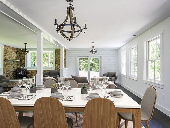 A combination of a fabulous location, stunning views, and the vision and skills of a master builder have resulted in a spectacular residence that is essentially brand new. The location is atop a rise overlooking Lake Waramaug. A talented builder has taken the original footprint and rebuilt a dwelling with a great design and the finest materials and fixtures. The front exterior features a bluestone terrace spanning the length of the house on the main level. The second level has 2 balconies with the best views of the lake. The cedar siding, windows, and doors are new. An open floor plan encompasses the kitchen, dining and living rooms. The sleek kitchen is equipped with Beko appliances, Quartzite counters, custom cabinetry. From the kitchen one can access the terrace that is partially covered; partially open. The living room has a glass-front wood burning stove sitting on a raised stone hearth. A media room, powder room, and separate laundry are also on this level. Four bedrooms and 2 baths are on the second level. The spacious master enjoys its own balcony as well as a luxurious bath with soaking tub and separate shower. Another bedroom has a balcony. New: central air, highly efficient propane heat, plumbing and electrical systems. The 3.3 acre property, located on a quiet (dead-end) road has been landscaped with stone walls, gardens, lovely sloping lawn and pea stone driveway. Close by are the Warren town beach on Lake Waramaug and the village of New Preston.