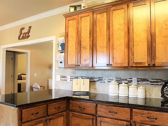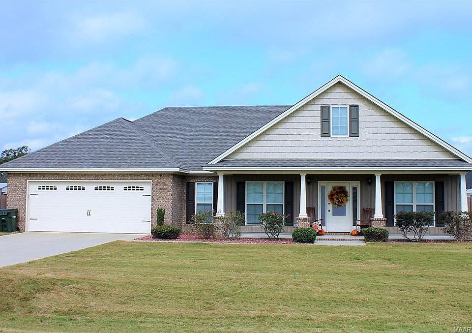 This beautiful, Southern Style home offers GRANITE countertops in kitchen and baths, a walk-in pantry in the kitchen, recessed lighting, trey ceilings with crown molding, BRICK exterior with vinyl trim, large laundry room with cabinets and UTILITY SINK, an inviting covered porch across the front of home with another covered porch out back. 2 car garage is over 500 SQUARE FEET. Master suite has a garden tub, separate tiled shower, split vanities with granite countertops, and a MASSIVE WALK-IN CLOSET. Almost a half acre homesite with full privacy fence! Zoned to Holtville Schools, convenient to public access to beautiful Lake Jordan!