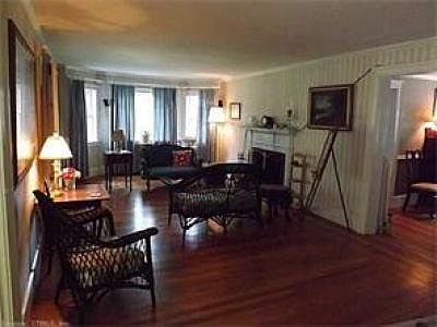 Absolutely full of character;large lr with fp, french doors to sun room. Huge foyer off covered front porch, formal dr, den, full bath and large kitchen w/island. Oil heat, some new windows. Garage addition of 2+ levels. Village setting, walk to store/po.