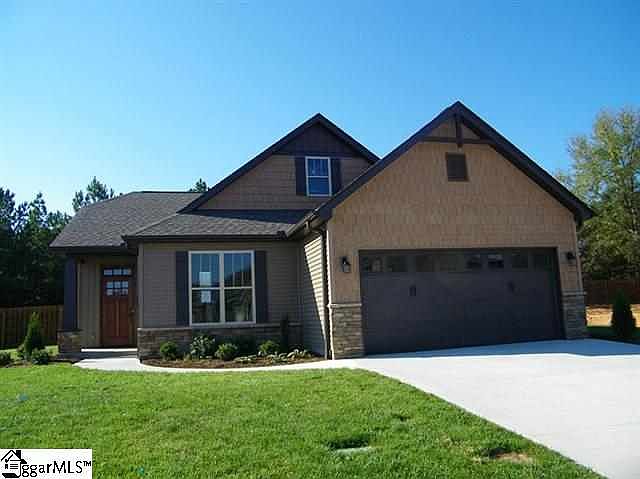 CRAFTSMAN STYLE HOMES WITH EACH HOUSE HAVING A LOT OF PERSONALITY. VERY PRIVATE AREA WITH FENCING FOR THE COMPLETE NEIGHBORHOOD. EXTENSIVE LANDSCAPING THROUGHOUT ALONG WITH SIDEWALKS AND CUL DE SAC STREETS. CONVENIENT LOCATION NEAR MAULDIN. WONDERFUL NEW FLOOR PLAN WITH MANY QUALITY FEATURES INCLUDING PRIVATE CUL-DE-SAC LOT, MASTER BEDROOM ON THE MAIN LEVEL, GRANITE COUNTER TOPS IN KITCHEN, HARDWOOD FLOORS IN ALL PUBLIC AREAS, STAINLESS STEEL APPLIANCES, BONE COLOR BATH FIXTURES IN MASTER BATH, OIL RUBBED BRONZE FAUCETS, ROMAN TUB FAUCET, TRANSOM WINDOW OVER FRONT DOOR, COVERED FRONT AND BACK PORCHES PLUS A PATIO, FULLY SODDED YARD FRONT AND BACK, IRRIGATION SYSTEM IN FRONT AND BACK YARD, STACKED STONE TRIM ON THE EXTERIOR AND STACKED STONE FIREPLACE WITH GAS LOGS, ANDERSON DOUBLE PANE WINDOWS (THERMAL), UPSTAIRS BEDROOM COULD BE USED AS BONUS/MEDIA ROOM, WALK IN UNFINISHED STORAGE AREA. THE NEIGHBORHOOD IS
