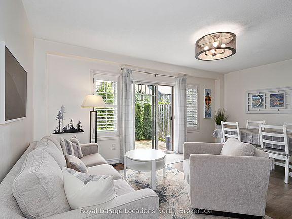 Fabulous, FULLY FURNISHED , end unit condo townhouse located in the desirable community of Silver Glen Preserve! Perfectly situated between Blue Mountain and Collingwood this community backs onto the Golf Course and nearby Georgian recreation trails. This stunning property offers a bright and spacious open concept living space with 3 bedrooms, 3 bathrooms and a fully finished lower level . The kitchen is beautifully equipped with a gas stove, quartz countertops and high end stainless steel appliances . There are sliding doors off of the living room leading to a private extra large treed patio and there is a large attached garage which has lots of room for storage. Upstairs is the large Primary Bedroom plus walk-in closet and 2 additional bedrooms and a large upgraded bathroom. The lower level is fully finished , complete with lots of storage , laundry room and finished 3 piece bathroom. In addition, this community offers great amenities including a clubhouse with full kitchen and many social events, a gym, change rooms with saunas and an outdoor swimming pool which are included in the low maintenance fees. Come and enjoy this fabulous home in this prime location!