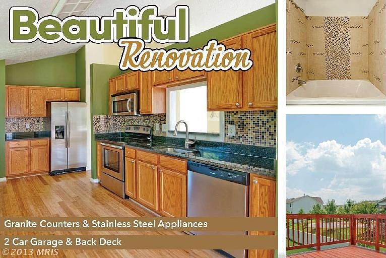 Beautifully renovated 4 BR / 3 full BA home on private lot in Deer Run at Mayfield backing to trees. Light and neutral featuring cathedral ceilings in LR and DR, wood floors and stainless steel appliances. 2000 sq ft of open finished space. Large back deck plus fully finished basement with laundry room. Oversized 2 car side loading garage. Seller can enlarge master BR if needed.