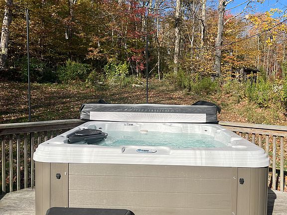 Large deckHot tubEnsuite bathLots of counter spaceLarge screen tvsXxl comfy couch