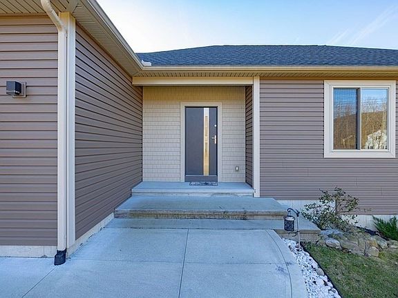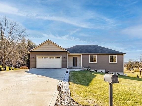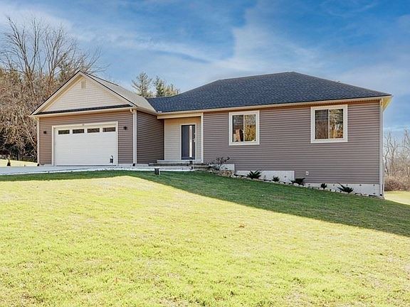 Expect to be impressed with this vinyl sided 3 bedroom ranch style home w/contemporary flair! This home was custom built in 2016 and is set on a .66 acre lot with scenic country and mountain views on a cultural-de-sac street! This property has so much to offer and features 9 ft ceilings, kitchen with quartz island & stainless appliances, Master bedroom with custom walk-in closet, Master bath w/walk-in shower & soaking, full unfinished walk out basement plumbed for 3rd bath & ready to be finished, 2 car attached garage, security system, light & bright open floor plan, large fenced garden area, living room with tray ceilings and skylights, dining room with sliders to oversized Trex deck and large paver patio. Showings deferred until Friday 12/17/21. Passed title V in hand!