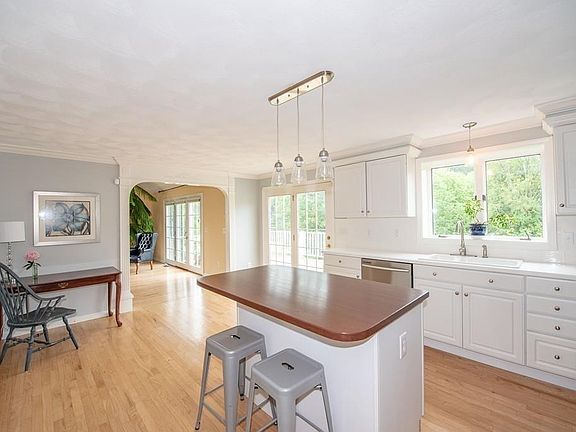 - Kit Dscrp: Pantry, Dining Area, Flooring - Hardwood, Countertops - Stone/Granite/Solid, Deck - Exterior, Kitchen Island, Open Floor Plan, Exterior Access, Lighting - Pendant, Crown Molding