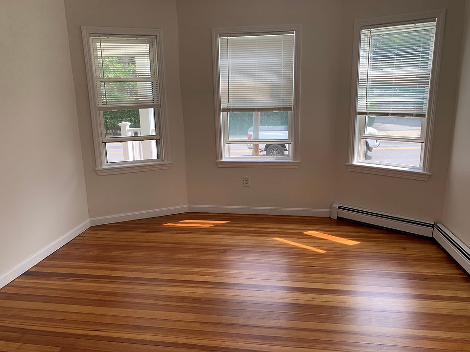 Spacious, sunny two bedroom, two full bath apartment. Living room, dining room, eat in kitchen with Appliances, private porch off the kitchen, hardwood throughout, two open space, private parking spots, washer/dryer, hook ups, great location, easy access to all major routes, Close to public transportation, dining, banking, and medical. Currently vacant and flexible with move-in date. Credit score of 750+ required, application and credit check/ employment verification required. 1 pet considered depending on size. 12 month lease. All utilities by lessee except hot water.