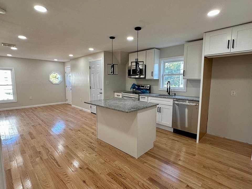 Totally Renovated 2 Family with new windows, roof, heating systems, plumbing, electrical, etc. The interior features recessed lighting and Gleaming hardwood flooring throughout, newly customed white cabinets, granite countertop, kitchen island w/ pendant lights, stainless steel appliances, beautifully tiled bathrooms, etc. The exterior features a newly paved driveway, maintenance-free vinyl siding, a nice backyard, etc.