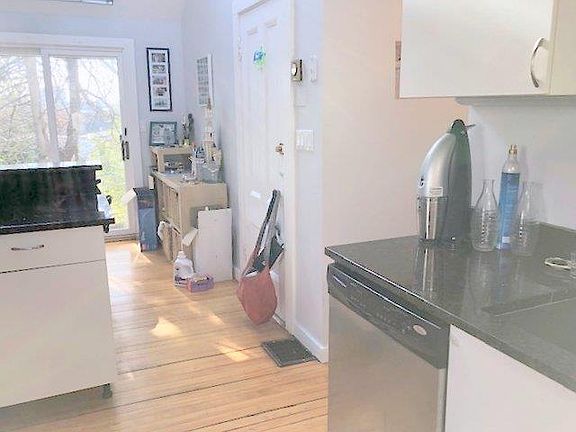 Extra charming 3 room unit in a historical home on a quaint street. Nice hardwood floors & high ceilings. Cool eat-in kitchen w/vaulted ceilings & skylights, dishwasher & disposal. This unit has a SWEET DECK and Central Air! Laundry is free in the basement. (Reference #136049)