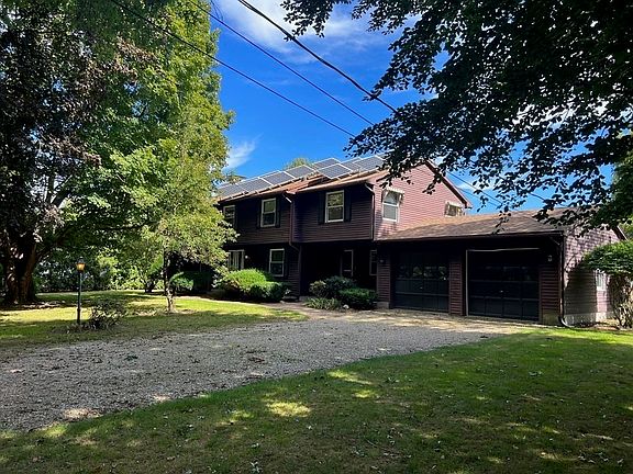 Welcome to 35 Spruce Hill Road- centrally located in beautiful Hadley with convenient access to area amenities. This oversized colonial offers spacious rooms with many great improvements over the years, including solar panels, solar tubes, irrigation, awnings, and more. The first floor offers a family room which opens into the Kitchen. A center hall leads to the Living Room, Dining Room, and first floor bathroom. Beyond the Living Room is a bright sunroom with vaulted ceilings and plenty of light. The second floor offers 4 generous bedrooms and 2 bathrooms, including the primary suite with full bathroom and walk in closet. The basement level has partially finished space, as well as ample storage and utility space. The attached 2 car garage and nice, level yard with scenic views, round out this wonderful home. Bring your finishing touches and it will be well worth it. This is a great home with space for everyone!