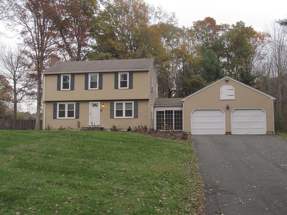 This 1976 solidly built colonial is tucked away from the road for privacy and features an open layout, updated kitchen and baths, and good sized rooms. Step inside the recently remodeled kitchen with new stainless steel appliances, a kitchen island and loads of cabinet space. You have a nice view of your private back yard from your kitchen window and the kitchen is open to the dining room. Lots of space for entertaining! Down the hall you will find a updated half bath, a laundry room that could also be a small office, and a large family/living room with a wood burning stove. Perfect for those chilly nights! Upstairs features generous sized bedrooms and a large master walk in closet. Upstairs bath also recently remodeled. Two car garage, shed, professionally landscaped, with all rooms wired for cable and Internet, this home is truly move in ready. Buy now and be home for the holidays!