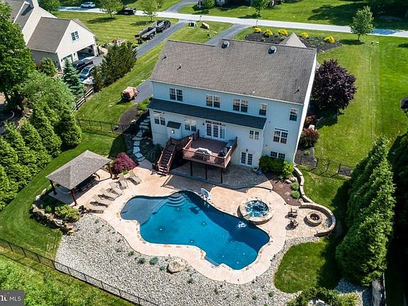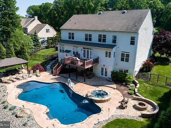 Enjoy the video tour of this exquisite estate home in the Downingtown School District with many system and cosmetic updates. The front entrance with Natural Stone Walkway and Side Patio is surrounded by evergreens and perennials that bloom throughout the seasons. In the Foyer you'll feel the expansiveness of the Cathedral Ceilings, Open Floor Plan, Graciously Sized Living and Dining Rooms with Designer Lighting, Wainscoting, and Crown Molding throughout. Newly Refurbished Hardwood Floors are Throughout the First level. The Eat In Kitchen has an Abundance of Cabinet Storage, Walk-In Pantry, Induction Cooktop (once gas and easily reverted), Double Self Cleaning Ovens, Island, Double Sinks, Microwave, New Dishwasher, Granite Counter Tops, Recessed Lighting and French Doors leading to the deck. The Sunken Family Room has a 4 ft extension from the original builder plan, Gas Fireplace, Recessed Lighting, Ceiling Fan and 2 large windows overlooking the Private Wooded Back Yard. An Office, Walk In Coat Closet, Laundry rm with Built In cabinetry and Powder Rm complete the main level. The Second Level with 4 Bedrooms and 3 Full Bathrooms has a Master Suite with sitting rm, 2 walk in closets, and an attached bath with a Jacuzzi tub, double stall shower with seat, an expansive vanity that spans the width of the room with 2 sinks and a private water closet. There is a prince/princess suite with full bath and walk in closet. And finally Jack N Jill bedrooms connected by a full bathroom with double sinks and a linen closet. All closets are professionally organized. The Lower Level has an expansive storage area with a Finished Daylight Walk Out Basement that leads you to the Custom Salt Water Heated Pool with Spa & Sun-shelf, Cabana that seats 10, and Fire Pit. This beautiful home has Geothermal heating & cooling, Whole House Generator, Video Camera Security, Speakers inside and out and a private wooded back yard.