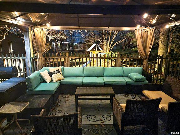 This Beautiful Home Has Everything You Will Love! Located in Flora's Raintree Plantation Subdivision you will love the quiet, low traffic neighborhood. This lovely one level, 1729 sq ft, 3 bedroom, 2 bath home has a quality and curb appeal that is hard to find in our area. The huge yard has lovely landscaping that is just waiting for spring, and the 3 elevated private decks overlook the great back yard offer 1562 sq ft of outside living space and privacy. The Gazebo on the upper deck was added in 2023 and will be staying with the home. If you love to entertain outside this is an area you will enjoy spring, summer, and fall. The stone trim on the covered front porch adds an extra elegance you will appreciate. The open concept inside will be loved if you have several guests or the immediate family. The kitchen is perfect if you love to cook with plenty of cabinets, counter space, breakfast bar, updated appliances, plus a huge pantry in from the garage. The 3 bedrooms are all nice size with the master having a separate access to the bath. The laundry room and 2nd bath located perfectly off the garage by the kitchen. The High Efficiency HVAC system was new in 2023, and the home features an on demand hot water heater for endless hot water. The 50-yr metal roof was new in 2019 making that another update you will not have to worry about. Popular location, lovely yard, outside living area and a beautiful one level home with attached 2 car garage. Yes, this is one home you'll love!