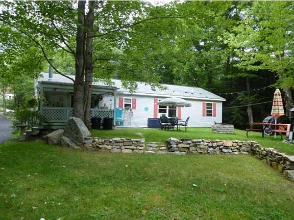 Well-maintained 3 bedroom, 2 bath expanded ranch in desirable, quiet neighborhood located off of centrally-located Meredith Neck Road. Many tasteful upgrades throughout the years make this house warm and inviting. Vaulted ceiling makes each room seem more spacious and large windows bring in lots of nice light. Wood-burning fireplace in the family room. Very nice large kitchen with dining area is located just off of the back covered open porch and deck and is terrific for entertaining, relaxing in and spreading out. Porch and deck overlook a nice large lawn with fire pit and various small gardens which are further enhanced by a park-like wooded private setting beyond. A true "oasis"! Peek-a-boo lake views in the winter. Huge paved driveway. Large detached shed. This property enjoys great privacy. Quiet, private water access with docks and moorings is at the Fish Cove association, of which this property is a part of. Move-in ready, this property is truly special!