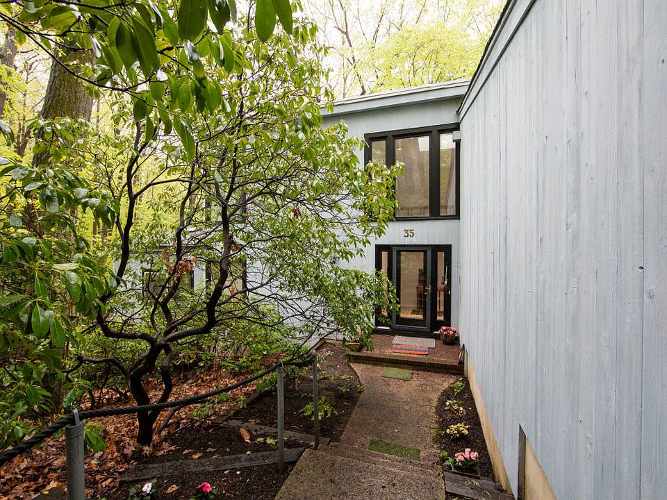 Your Very Own Private Retreat: a modern home discreetly set below and surrounded by flora at it's natural best...this four bedroom 2 1/2 bath home becomes one with nature as it's nestled in the Hills of Holmdel. The Double Story Foyer is welcoming and bright. The Large Kitchen with double sided fireplace opens to a step down Family Room. The generously sized Living Room steps down to the Dining Room. Office and Powder Room complete the main level. The upper level has four Bedrooms, Laundry Room and a Full Bath. The Master has His and Her Dressing areas with individual vanities and two closets each connected with a shared shower area. Wrap around deck, Greenhouse off the Family Room. Unfinished walkout basement and 2 car garage.