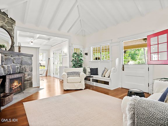 An unmatched opportunity and location await you at 35 Strickland Road in central Cos Cob at this charming, updated 3 bedroom cottage nestled between historic homes and adjacent to the Bush-Holley House Historic Society. Relish relaxing on the lovely front porch overlooking a sweeping half acre of rolling lawn with pond views. Enter the large sitting room with a vaulted ceiling, dramatic riverstone fireplace, period millwork and built-ins. The spacious dining room features a coffered ceiling and adjoins a freshly updated kitchen. A sunny master bedroom with en-suite bath plus 2 additional bedrooms and second bath add comfort. The Cos Cob train station is a short distance away, as is shopping and the Mianus River waterfront.