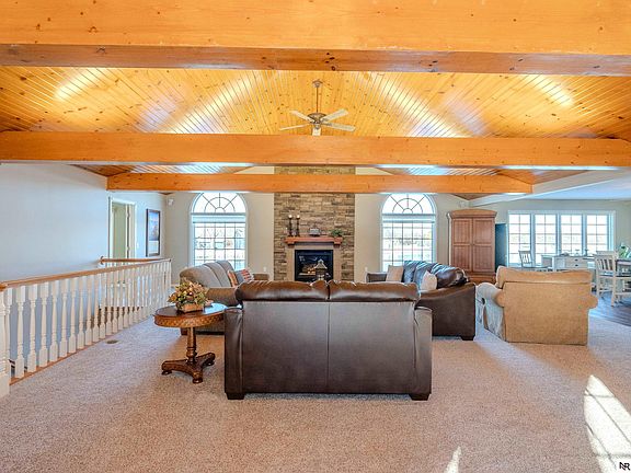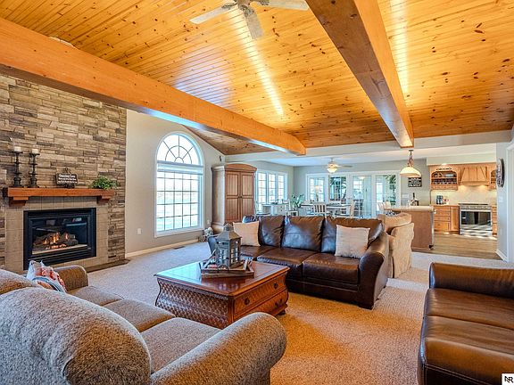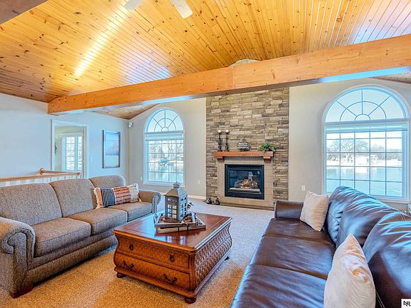 Welcome to this stunning 3 bed, 4 bath walkout ranch located on Sundance Lake! Enter into the living room with majestic views of the lake and handsome stone fireplace! The wood beams and ceiling are stunning in the living room! To the right is a large dining room and gourmet kitchen with professional grade appliances, including double frig and freezer! The sunroom is large with relaxing views of the water! The primary bed & bath (including sauna) are on the main level w/stunning views of the water! Downstairs is the large family room with French doors that open to the patio and water views! There is a 2nd kitchen downstairs. Washer & dryer upstairs & downstairs. 2 lrg bedrms w/French doors to walkout to breathtaking lake views! The home is private with common area adjoining. Current improvements are furnace, water purification system, dock and lifts, sea wall, rock exterior, fireplace insert, shed, two 50 gallon hot water heaters, carpet, appliances! New $20K landscaping in 2023.