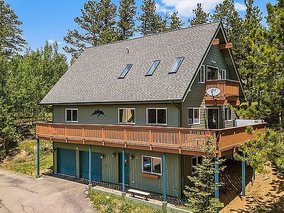 Gorgeous mountain home with sweeping views w/miles of hiking and biking trails right out the front door. This light-filled home surrounded by aspen groves is only a 20-minute breathtaking drive up Boulder Canyon, 10-minute walk to downtown Nederland, and 15 minutes to the lifts at Eldora. Enjoy watching the moose, elk and hummingbirds from the huge wrap-around deck and gaze at the night sky from the 6-person hot tub. The house sits on .38 acres with public water and sewer in the Sunnyside neighborhood, a stone's throw from Nederland Elementary School. The main level features an updated kitchen w/stainless steel appliances and granite countertops, an open living-dining area with vaulted ceilings, two spacious bedrooms and full bath. Lower level features a living room with walkout access, mudroom, 1/2 bath, and gas fireplace and direct access to the 2-car oversized garage w/storage. The master bedroom and loft area are on the top level with balconies on either side, vaulted ceiling with skylights, ample storage space and an updated master bath with dual sinks. The home has a brand new dial-stage furnace, newly-painted deck and the land has been protection certified for fire. This is a FANTASTIC, rare opportunity for anyone looking for an ideal mountain setting that is located just outside of Boulder and other conveniences. Don't miss this one! Check out the drone pictures and Virtual Tour for a true feel for this property. Vacant and easy to show.