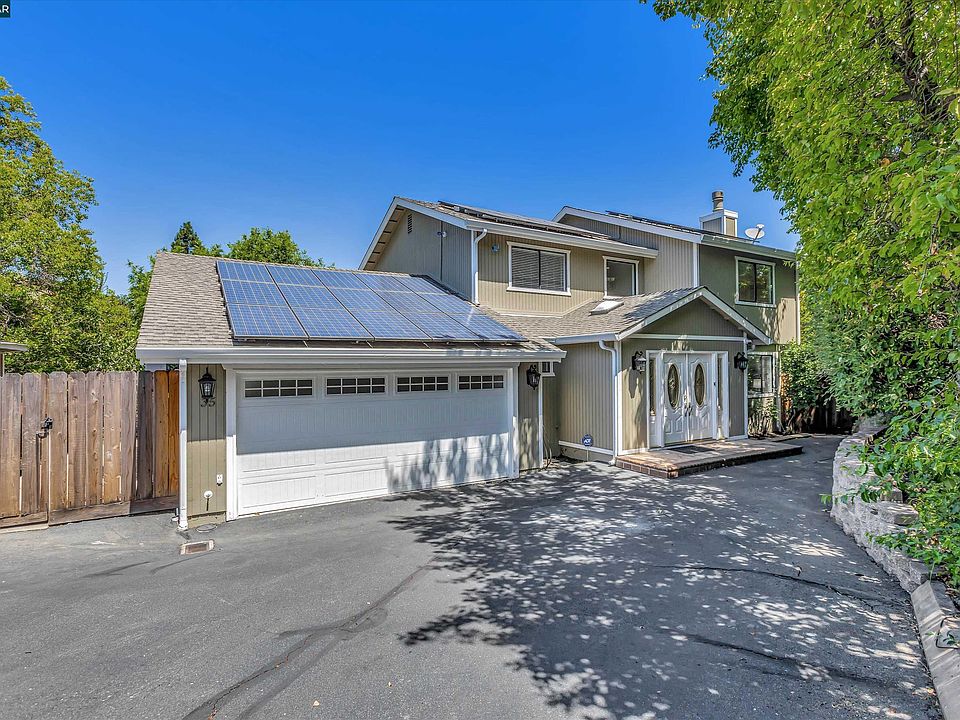 Discover the allure of 35 Sunrise Lane in Lafayette! This spacious 2-story home sits on a tranquil nearly 1/2 acre lot, featuring 4 bedrooms, 2.5 bathrooms, and a generous 2,083 sq ft of living space. The artfully landscaped yard showcases gardens, fruit trees, and a separate fenced area, while the expansive stamped concrete patio offers a private outdoor space to relax. Inside, the updated kitchen with granite counters, quality stainless steel appliances and spacious pantry flows seamlessly into the living spaces. A spiral staircase leads to the primary suite and three additional bedrooms, all with updated bathrooms. Central 2 zone HVAC and an additional split unit in a garage. Solar is owned. Don't miss the beautiful garage with ample built in cabinets and expansive semi-finished attic. This very special home offers comfort and convenience; conveniently located near highways (680/24), BART stations and Palos Verdes Mall. This is a must-see!