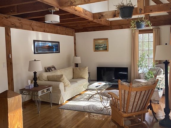 You dont want to miss out on this sun filled open concept 2 bedroom, 2 bath fully furnished home with loft in York, Maine. This post and beam home, with cathedral ceilings, has been tastefully updated. The hardwood floors have all been refinished and the bathrooms are tiled and refreshed. The kitchen has new appliances and is fully stocked with everything you need. The finished laundry room in the basement, with washer and dryer, is attached to a workshop / storage area. The back deck off of the dining / living room is a great place to take in the fresh air and all of the nature around you. The backyard is flat and surrounded by mature trees. Walking trails and a pond are within walking distance. It is a 2.5 mile drive to downtown York and the beaches and 1.0 mile to I95. Employment and Income Verification, Credit Check, Rental History Verification, and Criminal Background Check. $25.00 Rental Application Fee