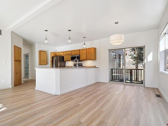 This spacious 2-bedroom, 1.5-bath condo in Sunshine Gardens, a 55+ senior living community, offers an abundance of natural light and a cozy atmosphere. Updated in 2025 with new paint, lighting, flooring and appliances. With ample windows, a private deck, and generous bedroom sizes, this condo is ideal for comfortable and low-maintenance living. Unit #2 features a well-appointed kitchen with stainless steel appliances, cabinetry, a pantry, and an open floor plan that seamlessly connects to the living and dining areas. This move-in-ready corner unit offers gas forced heating and a gas fireplace providing warmth during the winter months. Air conditioning ensures year-round comfort. A sliding glass door opens onto a back deck offering scenic views of the North Animas Valley. Enjoy the convenience of nearby amenities, including the trolley, grocery store, river trail, a 55+ center, and the Durango Recreation Center.This intimate eight-unit complex provides an elevator to access the shared laundry facilities and a common gathering room for socializing, playing games, or simply enjoying the company of neighbors.