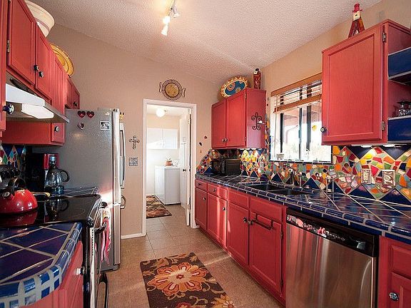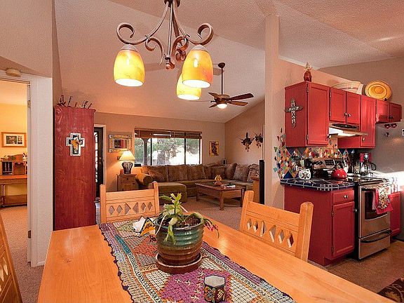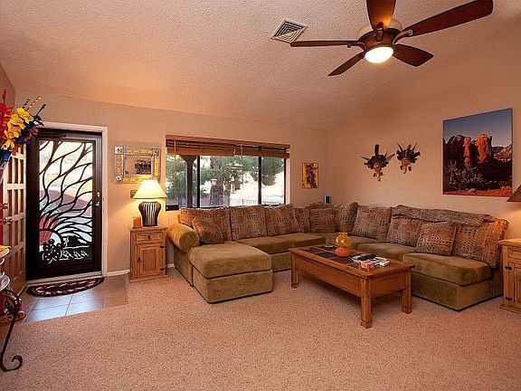 Welcome to one of the Village of Oak Creek's more unique & charming homes. Southwest influences are felt in the approximate 700 s.f. of courtyard space in the front of the home complete with a stucco wall, custom gate, chiminea & gas firepit. The views of Courthouse Rock & Bell Rock are tremendous. A custom security door at the entry has a removable glass panel to allow fresh air to breeze through the home during the perfect weather days of spring & fall. Inside, a festive & updated kitchen is red cabinets, talavera tile topped counters with a back splash of brilliant colors to match. Stainless appliances. The living area offers red rock views. A dining area opens out to a covered back patio to watch the sun set behind Castle Rock. The guest bath has a gorgeous vessel sink & master bath offers granite counters & a tumbled marble shower. The location is fabulous. Fine dining, golf, tennis, popular walking/hiking paths, coffee shops, medical services & convenience marts are all near.Brokered And Advertised By: Russ Lyon Sotheby's Intl RltyListing Agent: Jacque Weems