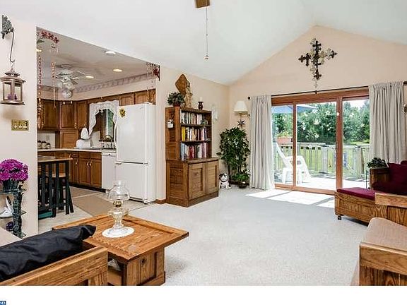 This unique, secluded 3.93 acres of wooded peace and quiet is conveniently situated between Rt 73 and Rt. 30. The maintenance-free rancher sits at the end of a 200 foot driveway, located on a cul-de-sac in the Villas East section of Waterford Works. The interior of this charming 3 Bedroom and 2 Full bath house has a neutral decor throughout and large front-view windows with thermal draperies throughout. All rooms feature solid wood paneled doors, premium windows and real wood trim in a country oak finish. The large family room has cathedral ceilings w/ a hanging ceiling fan and a 9 foot sliding glass door that offers spectacular backyard views year round. The 1,300 square foot basement offers 8 ft poured concrete walls and a three process H2O treatment system. The high efficiency AC/HVAC units were installed in 2013. The entire house plus the garage is protected by an ADT security system. In addition the owners have personally planted over 1,800 assorted evergreens, hardwoods, shrubs, and flowers throughout the property. Over the years they have created a lovely, serene wildlife oasis, which includes generations of deer to enjoy. Year round you will observe countless species of birds at the feeder from the over the sink window. The kitchen also has ample counter space and floor to ceiling solid oak cabinets and a Kenmore appliances package. In the winter you can view Spring Branch Creek through the woods from the 12x10 back deck. The owners can include all necessary equipment like the John Deer riding lawnmower along with other outdoor items that can stay to maintain and enjoy your private sanctuary. Ask about the list of items that can be included with an acceptable offer. Note: Please do not walk up the driveway without permission, it is private property.