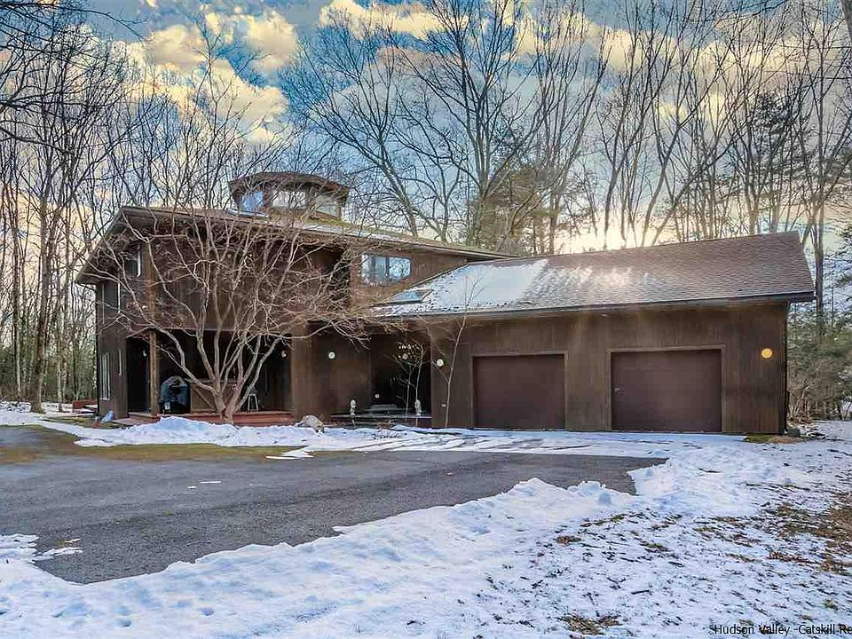 Tucked away on a 10 acre parcel in Bright Acres sits this 3322 +/- square foot contemporary - sun drenched is an understatement! Very functional first floor offering many unique features - Big Bright, modern kitchen with indoor grill, inviting living room, sun room, oversized windows everywhere with wood burning fireplace. Master bedroom suite has the luxury of years gone by - spacious master closets, jetted tub! 3 additional bedrooms and bathroom, 3rd floor conservatory for star gazing or watching a storm come in! Exterior is understated, bluestone walkways, patio and decking, beautifully wooded perfect for walks, peace and quiet. All this attached to oversized 2 car garage.