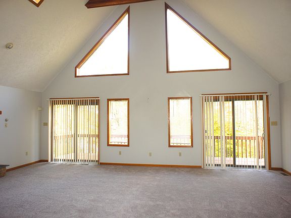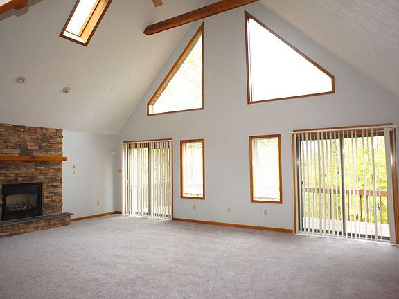 This Quality Built 3 Bedr. 2 Bath Cedar Chalet offers a great open floor plan, impressive great room w/ cathedral ceilings & stone fireplace. Very nice kitchen, SS appliances & bfst. area. Sunroom, 1st floor master, WIC & private bath. Open loft makes a perfect den or office space. Finished LL family rm, front & rear decks, private yard & 2-car garage.