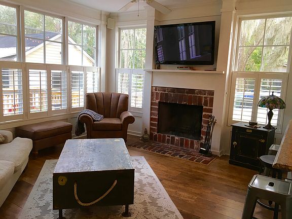 This downtown Bluffton home has a large first floor master, quintessential southern front porch with a porch swing, large fenced in back yard with deck, open floor plan kitchen, wood burning fireplace and a detached garage. Perfect location in Old Town Bluffton, steps from restaurants, shops and art galleries. Located next to Oyster Factory park and the May River with boat ramp and deep water access. Owner prefers a 6-8 month lease. Would consider a one year lease however at a more expensive price. Pets negotiable, no utilities included.