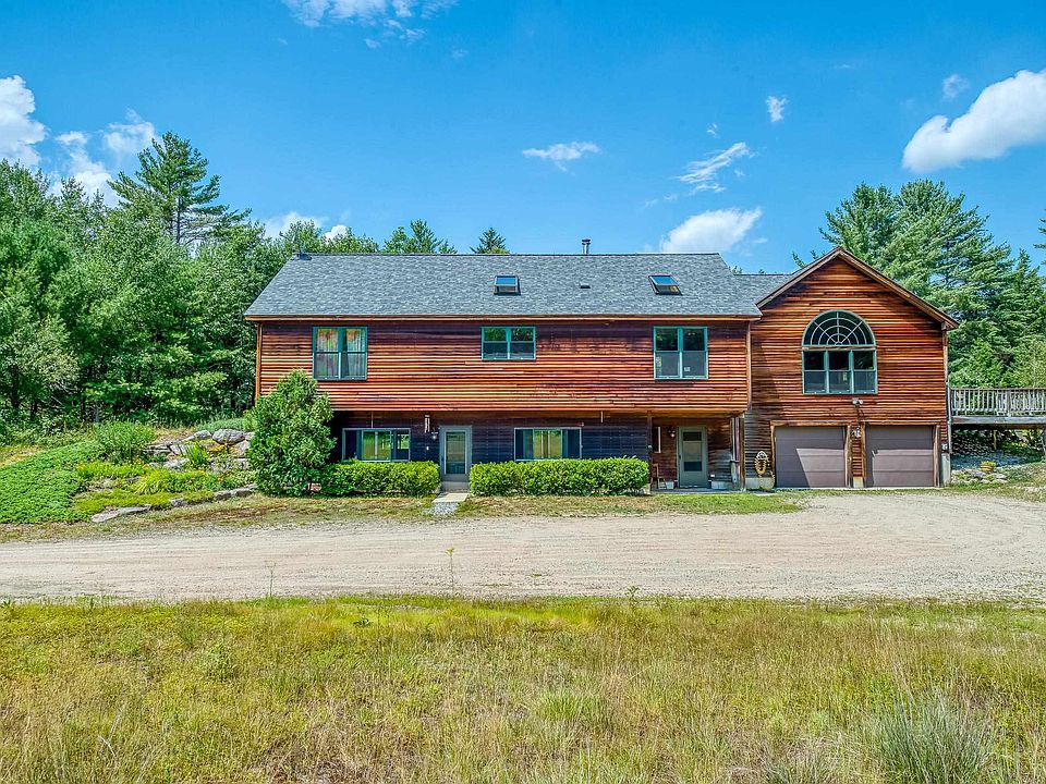 COME CHECK OUT THIS SPACIOUS LIGHT AND BRIGHT CONTEMPORARY located in the Quaint Town Of Eaton. Just 2.5 miles down to the town beach at Crystal Lake and only 15 minutes to Conway. Stone Mountain Art Center is only about 10 minutes away as well!! This home features a large family room with vaulted ceilings and wood stove. Opens to a sunny, private deck overlooking the very private 2 plus acre lot bounded by stone walls and fields and garden area. Inside the kitchen is a dream with high end appliances, double oven, gas cook top, two sinks, a huge amount of cabinetry, beautiful wood counter tops! Wonderful hardwood and softwood floors throughout. Two bedrooms and large bath with laundry are on the main level. Lower level is a walkout with family room and two additional bonus rooms and another bath. Ideal private area for guests! Two car garage under. Great private country location and low taxes!!!