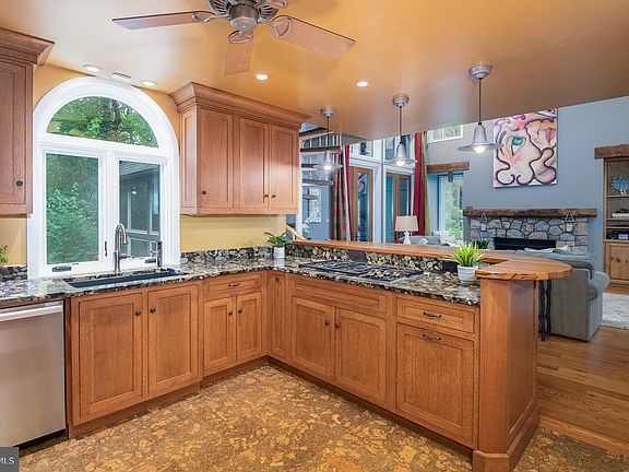 This Truly One of a Kind Home is being offered For Sale for the First Time since being built in 1989! Nestled in the woods, this Custom-Built home features Large Open Rooms with Rough Cut Timber accents throughout. In addition to a Dramatic Two-Story Entry, the Vaulted Family Room off of the Custom Kitchen is a Vaulted Two-Story Space with a Gorgeous Wall-to-Ceiling Stone Fireplace! From this Fantastic Living Space, you access an Amazing Screened In Porch with Soaring 20 FT Ceilings and Decks across the back of the Home! The ~Library~ which also serves as a Dining Room, features an Amazing Free Form Wood Table and the Fireplace is Doubled Sided and is shared by the Dramatic Office complete with a Staircase to the Master Bedroom! The Master is Huge with Cool Outdoor Shower ~ His/Hers Closets and a Gorgeous Tile and Glass Luxury Bath! Two additional Bedrooms are on this level, each with a Bath En-Suite. The Lower Level is Finished with Kitchenette and Bath, huge bedroom currently an art studio, a Rec Room, Exercise Area, and Storage are located on this level. Basement is a Walkout with Windows and Sliders that lead to a Beautiful Paver Patio! Enjoy this Unique, Quality Custom-Built Home!Total Sq Ft is 5,780!