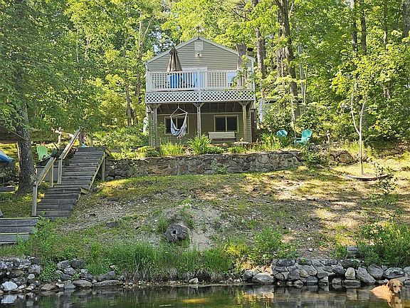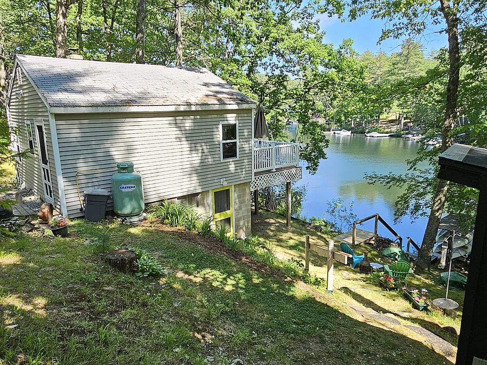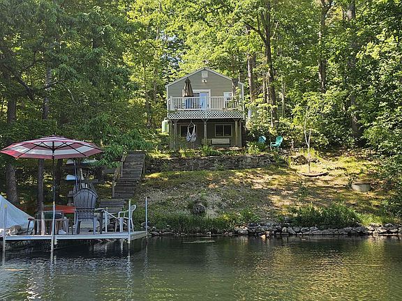 Unwind by the water: Charming Lakefront Cabin Retreat - Fully furnished, 2 bedroom, 1 full bath, lakefront home. Use seasonally or year-round. Immaculately maintained, many recent updates including gorgeous hardwood flooring, and heatpumps for heat and a/c. 73' of water frontage on Goose Pond with aluminum dock and stairs into the water and w/direct water access to Mousam Lake and a Deeded ROW to Square Pond. That's access to 3 bodies of water for the price of one! Additional deeded back lot for possible garage with extra living space and/or storage. It's currently wooded and being used as garden space, cornhole game area and extra parking. There are two utility sheds right outside the home, and 4 kayaks on roofed storage racks staying! Best of all, if you are interested in increasing your living area, the 30% EXPANSION HAS NOT BEEN TAKEN!!!