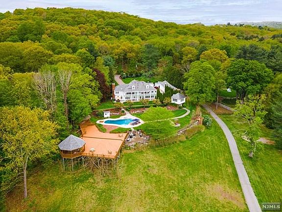 Elegant, magnificent and only 55 minutes from NYC sits this majestic classic Colonial mansion upon 15 acres of farm-assessed land with numerous ancillary buildings. Only the finest materials have been employed by old world artisans with today's most desired amenities. No detail big or small has not been attended to. Double staircase, hardwood floors, molding throughout, granite tops, high-end appliances, built-ins, custom woodwork, marble, tiled back splashes, cathedral ceiling, balconies. Detail, detail, detail! Saunter onto the back patio that overlooks the parklike backyard with custom in-ground pool with bar along with 2 gazebos and a deck built for entertaining. A beautiful pond, basketball court, barn for the donkeys, and several garages along with a rear entrance to the back 15. A butler's quarters with kit, LR, BR and full bath sits above the 3-car garage. A free-standing gym is steps away from the soothing fountain.