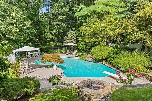 Welcome to this beautifully appointed 5 bedroom Colonial on a gorgeous 1/2 acre in desirable "Chestnut Estates" neighborhood! Buyers will love this sun-splashed home with over 3,300 s.f. of living space. So many fantastic features: Updated windows, HW floors, roof, heating system, kitchen, baths, etc. ! Oversize kitchen features SS appliances, granite counters, tile back splash, breakfast bar and adjacent dining space. Attached family room w/cathedral ceilings, HW floors & gas fireplace. The second level features 4 bedrooms, with a master bedrooms suite, including a spa-like bath addition w/separate shower & whirlpool tub! Additional bedroom on third level. LL is idea as a workout room! A resort like setting is home to this lush, private yard w/in-ground Gunite pool w/waterfall, specimen gardens & gas fire pit. Additional bonus room w/cathedral ceiling, skylights, & wet bar leads to multi-level decks. Close to MBTA Trains- good because that backyard retreat is calling...